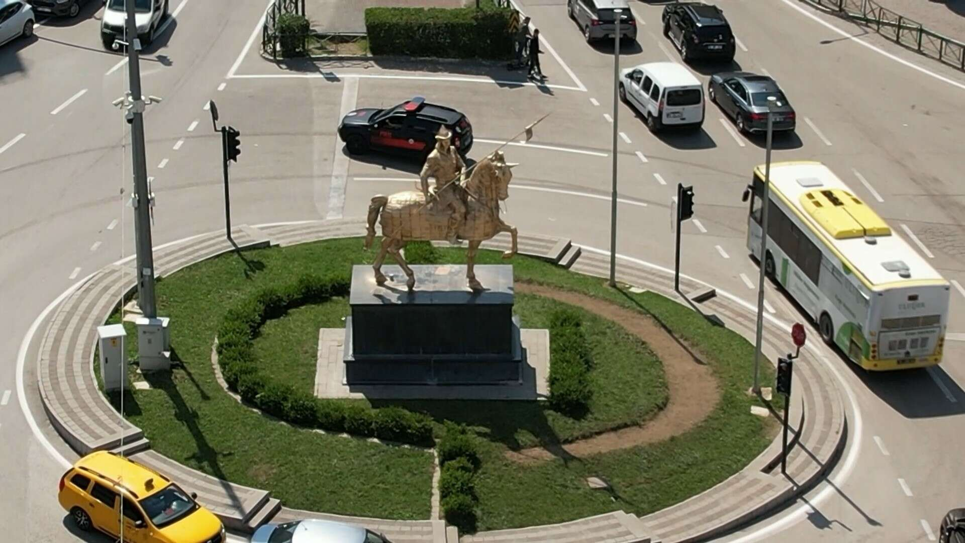Bursa’nın Osmangazi ilçesi 15 Temmuz Demokrasi Meydanı’nda 15 yıl önce Osmangazi heykelinin yapımını gerçekleştiren Eray Okkan yıllar sonra eserinin restore çalışmasını yaptı. İlçenin simgesi haline gelen heykelin zarar gören yerlerini tamir eden Okkan, heykelin rengini de gümüş renginden altın rengine boyadı.