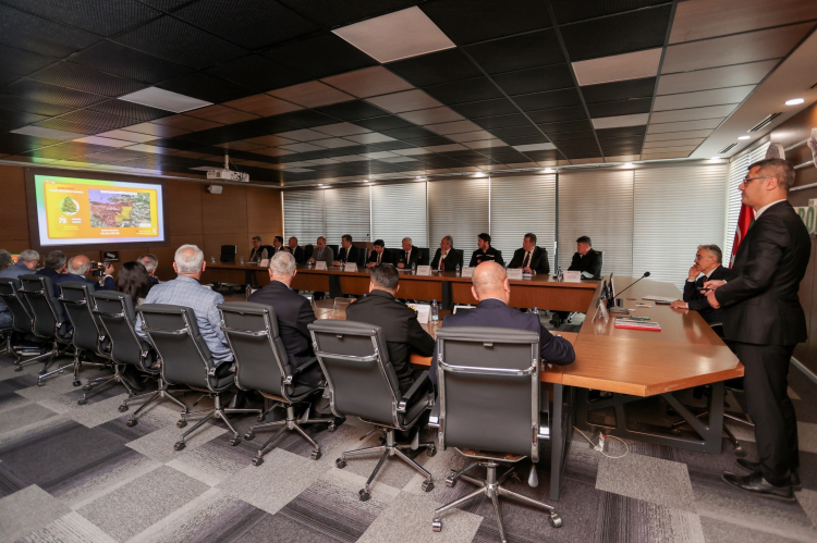 Bursa Valisi Erol Ayyıldız, Bursa Orman Bölge Müdürü Erdal Şahan’ı ziyaretinde orman çalışanlarıyla da 'Orman Yangınlarıyla Mücadele Toplantısı'nda bir araya geldi.