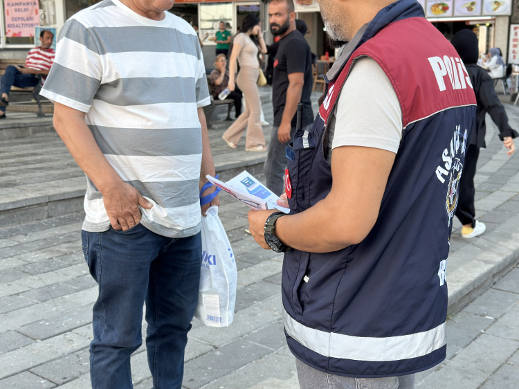 Bursa İl Emniyet Müdürlüğü Asayiş Şube Müdürlüğü'ne bağlı ekipler, şehrin en kalabalık meydanları ile noter önlerinde dolandırıcılık olaylarına karşı broşür dağıtarak vatandaşları bilgilendirdi.