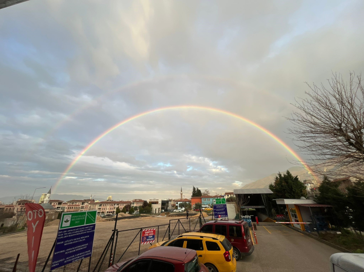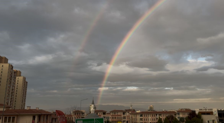 Hafif yağmurun ardından güneşin yüzünü göstermesiyle oluşan gökkuşağı Bursa semalarında görsel şölen sunarken, şehri ikiye bölen kapıya benzerliğiyle görenleri hem şaşırttı hem de hayran bıraktı.