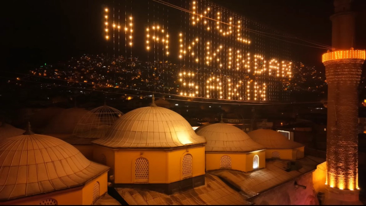 Osmanlı’dan miras 400 yıllık mahya geleneği, Bursa semalarını yeniden aydınlattı. Tarihi Ulu Cami’nin minareleri arasına bu yıl asılan "Kul hakkından sakın" yazılı mahya, hem büyüleyici bir manzara oluşturdu hem de Ramazan'ın manevi ruhunu kalplere kazıdı. İşte o ihtişamlı görüntü...