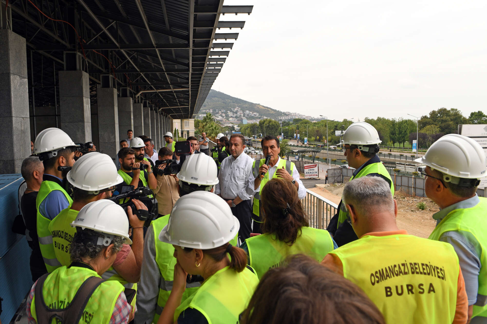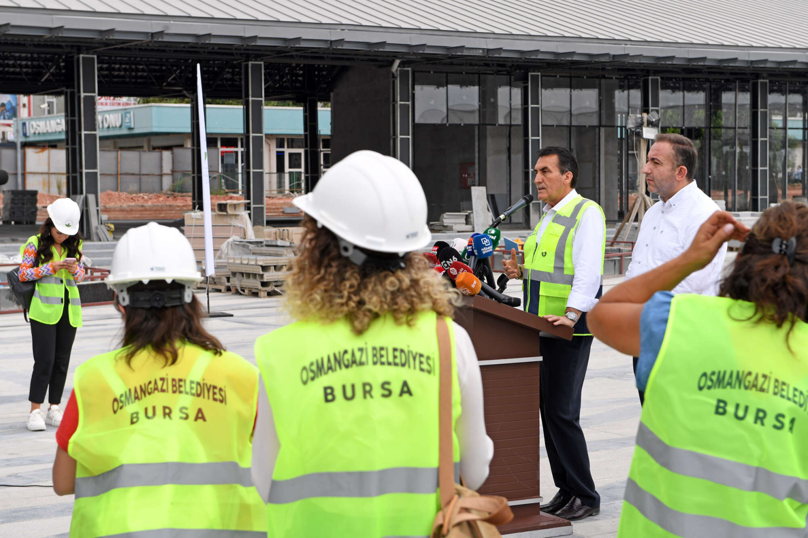 Projenin birinci etabının tamamlandığını ve kısa bir süre sonra da hizmete açılacağını kaydeden Başkan Dündar, “İkinci etabın kamulaştırma çalışmaları da son aşamaya geldi. Yakın bir zamanda ikinci etabın da projesi uygulanacak. Osmangazi Meydanı, bütünüyle vatandaş odaklı bir proje olarak ortaya çıktı. Metro ile bu bölgeye gelen vatandaşlarımız, araçlarını buraya park ederek, yaya olarak çarşıya ve şehir merkezine çıkabilecekler. Meydan bölümünde vatandaşlarımızın güneşten ve yağmurdan korunabileceği bir çatı sistemi uyguladık. Geleneksel Bursa revaklarının modern çizgisini buraya yansıttık. Bu bir kentsel dönüşüm çalışmasıdır. Bursa’mızın yıllardır çöküntü olan bölgesine yeni bir fonksiyon kazandırarak şehrin geleceğine yön veren, gelişimine katkı sağlayacak bir proje oldu. Tarihi şehir ile eski şehri bütünleştiren bir projeyi hayata geçirmenin heyecanını yaşıyoruz. Bu proje, diğer eskiyen çöküntü olan bölgelere de öncü olacaktır. Şehrimize değer katıyoruz, bizi izlemeye devam edin. ” ifadelerini kullandı.