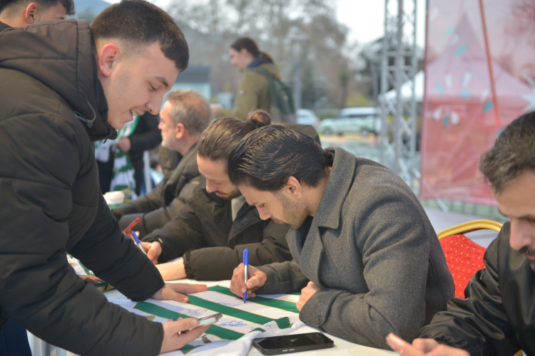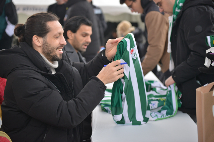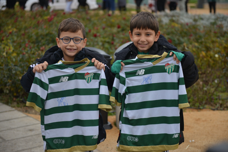 Öte yandan Bursaspor Başkanı Enes Çelik, Teknik Direktör Tahsin Tam ve futbolcular Taha Batuhan Yayıkçı, Muhammed Demir ve İlhan Depe de Yeni Yıl Meydanı’nda düzenlenen imza gününde taraftarlarla bir araya geldi. Programa yoğun ilgi gösteren yeşil beyazlı taraftarlar, uzun kuyruklar oluşturarak tezahüratlar eşliğinde forma ve atkılarını imzalattırdı.