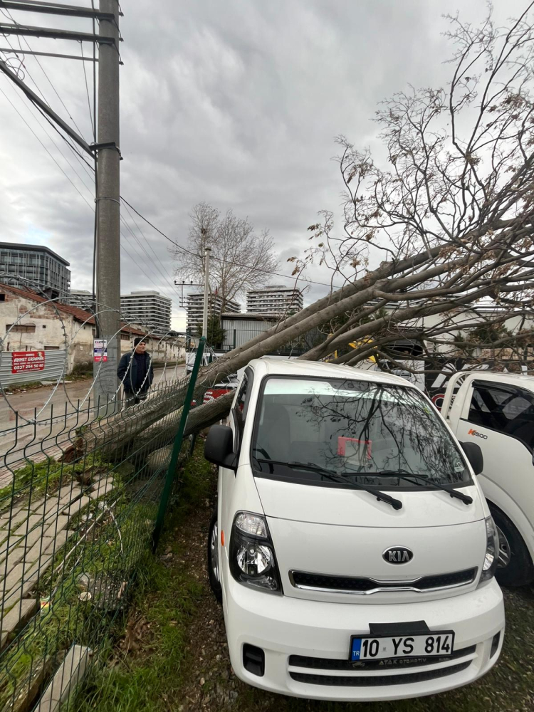 Bursa'da etkili olan şiddetli lodos, çok sayıda ağacı devirdi. Osmangazi Belediyesi ekipleri, devrilen ağaçları hızla kaldırarak yolları ve parkları temizledi. Lodosun güçlü etkisinin Pazar günü geç saatlere kadar sürmesi bekleniyor.