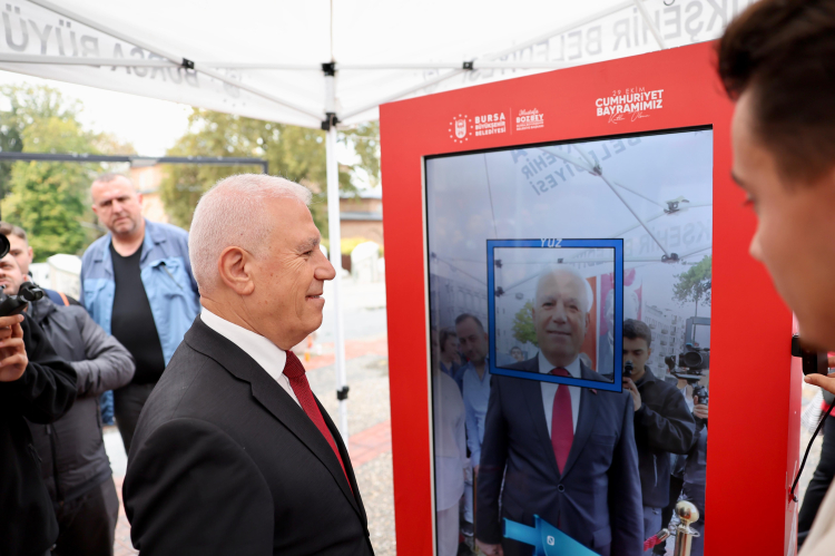 Bursa Büyükşehir Belediyesi, Cumhuriyet coşkusunu daha özel kılmak ve vatandaşlara unutulmaz bir hatıra bırakmak amacıyla kentin farklı noktalarına yapay zekâ kiosklar yerleştirdi. Bu kiosklar aracılığıyla fotoğraf çektiren vatandaşlar, yapay zekâ teknolojisi sayesinde Ulu Önder Mustafa Kemal Atatürk ile aynı karede yer alma mutluluğunu yaşadı. Hayata geçirilen bu uygulama, 28 Ekim’de UNESCO Tarihi Meydanı ve Bursa Şehirlerarası Otobüs Terminali’nde vatandaşlarla buluşurken, 29 Ekim’de ise PodyumPark ile Kent Meydanı’nda vatandaşların hizmetinde olacak.