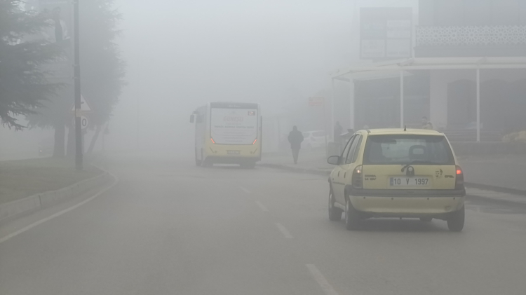 Bursa'nın İnegöl ilçesinde sabahın ilk saatlerinde yoğun sis etkisini gösterdi. Görüş mesafesinin zaman zaman 10 metreye kadar düştüğü anlarda araç sürücüleri zor anlar yaşadı.