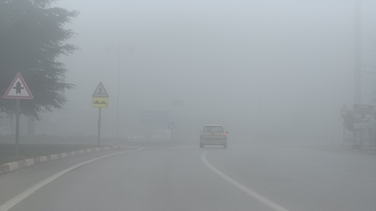 Yoğun siste ilerlemekte güçlük çeken bazı araç sürücüleri dörtlü flaşörlerini yakmak zorunda kaldı.