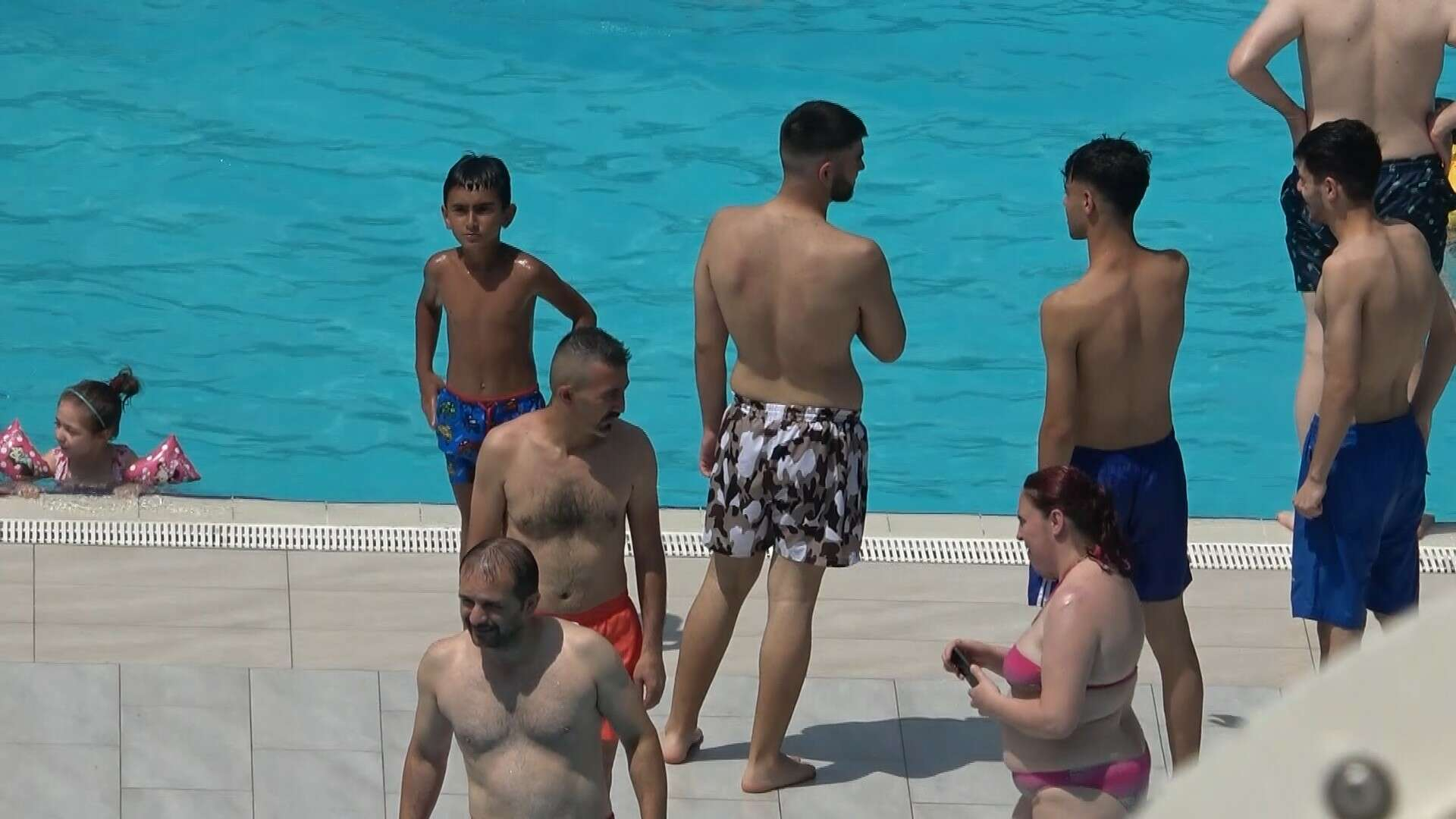 Hava sıcaklıklarının mevsim normallerinin üzerinde seyrettiği Bursa'da vatandaşlar, havuzlara akın etti.