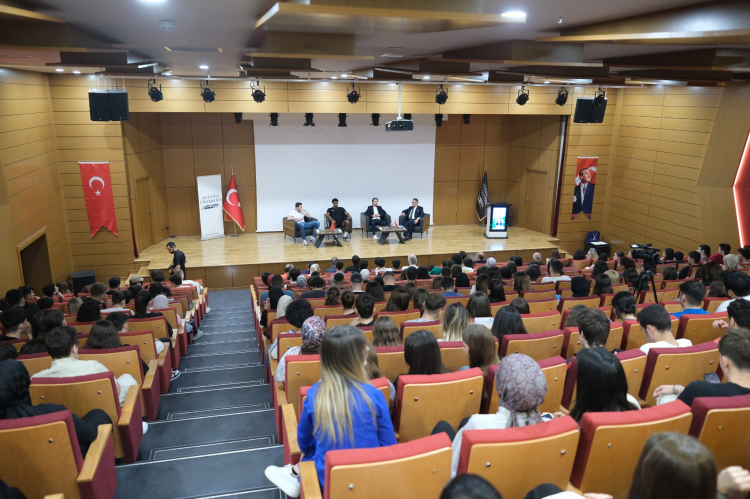 Bursaspor Basketbol Takımı Başkanı Sezer Sezgin ile basketbolcular Berkay Candan ve Donte Gratham, Mudanya Üniversitesi öğrencileri ile söyleşide bir araya geldi.