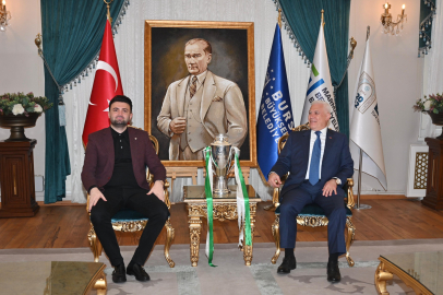 Nesine 3. Lig 1. Grup'ta şampiyonluğa ulaşarak 2. Lig'e yükselmeye hak kazanan Bursaspor’un Başkanı Enes Çelik ve yönetim kurulu üyeleri, şampiyonluk kupasıyla birlikte Bursa Büyükşehir Belediye Başkanı Mustafa Bozbey’i Tarihi Belediye Binası’nda ziyaret eti. Samimi bir ortamda gerçekleşen ziyarette, zorlu bir süreçten geçerek bir üst lige çıkmayı başaran Bursaspor’un yeni hedefleri konuşuldu.