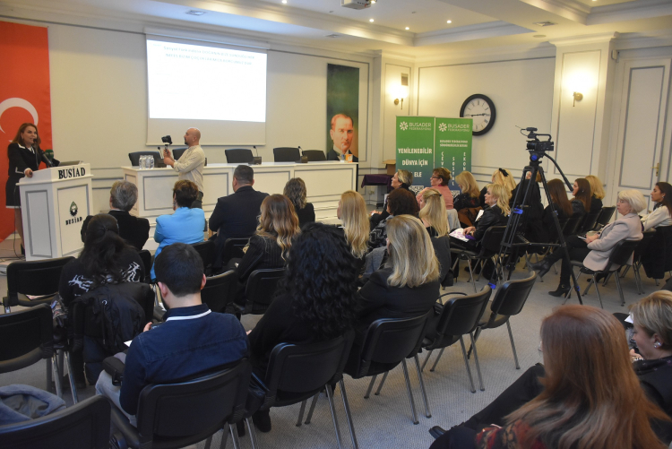 Ekonomist ve Sanayici, Bursa BUSADER Üyesi İlkay Yıldırım gerçekleştirdiği sunumunda, “Doğanın bize sunduğu her nefes bizim çocuklarımıza borcumuzdur. Doğayı korumak, bu konuda öncü olabilmek adına BUSADER ailesi olarak yaptığımız çalışmalardan dolayı gurur ve mutluluk duyuyorum. İnsanoğlu, lüksü ve konforu seviyor. Bu gerçekle birlikte 1970’lerden itibaren çok büyük üretim faaliyetleri gerçekleşmiş. Avrupa’da ve dünyanın birçok yerinde sürekli üretim yapılmış ve sonsuz insan isteklerini karşılayabilmek için dünyaya çok büyük zararlar vermişiz. Şu anda ise bu verdiğimiz zararın farkında olduğumuz bir dönemde yaşıyoruz ve birçok riskle karşı karşıyayız. İşte tam bu sebeple bu konuda atılan her adım çok kıymetli” şeklinde konuştu.
