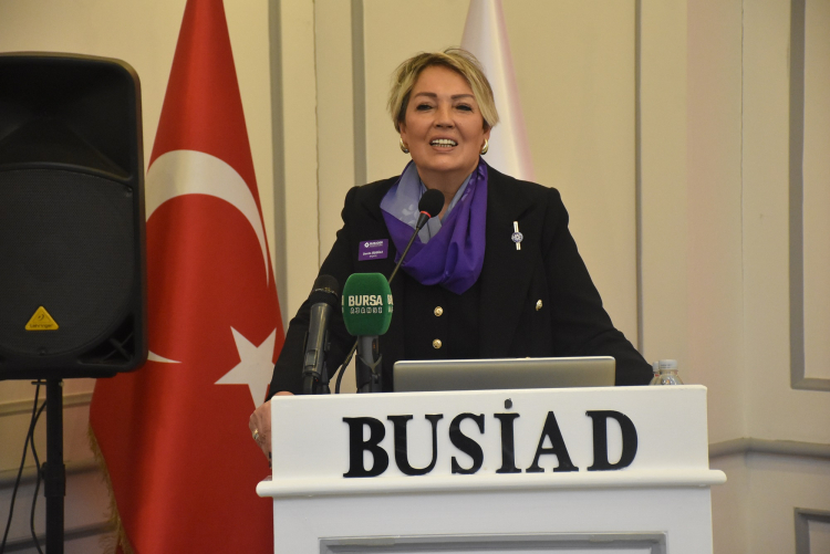 Programın ilk konuşmacısı olan Yüksek Şehir Plancısı ve Bursa BUSADER Üyesi Nalan Fidan, ‘Sürdürülebilirlik ve İklim Değişikliği' konulu sunumunda sürdürülebilirlik konusunun kurum ve kuruluşlar tarafından çok fazla dile getirildiğini ancak yeterince harekete geçilmediğini belirtti. İklim değişikliği konusunun bir sorun şeklinde değil insanların davranışlarını iyi yönde değiştirmek ve kurumları sürdürülebilirlik çerçevesinde geliştirmek için bir fırsat olarak görmek gerektiğini aktaran Nalan Fidan, “Hepimiz elimizi taşın altına koyarak kentlerimizin sorunlarına sahip çıkmalıyız” dedi.