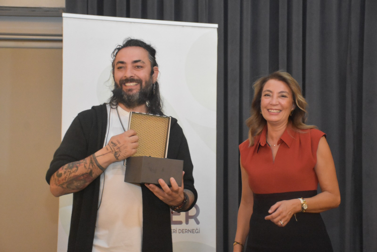 Programın sonunda Bursa BUSADER Yönetim Kurulu Başkanı Elif Evke, günün anısına Prof. Dr. Uğur Batı’ya geri dönüştürülmüş malzemeden yapılmış bir termos hediye etti.