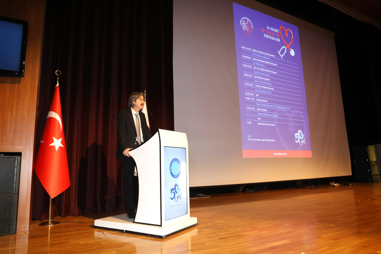 Konuşmasına, üniversitenin kuruluşundan bu güne kadar tıp fakültesinin değerine vurgu yaparak başlayan BUÜ Rektörü Prof. Dr. Ferudun Yılmaz, 50 yıllık üniversite tarihine tıp hocalarının damga vurduğunu ifade etti. Türkiye'nin modernleşme tarihinde tıbbiyenin yeri ve öneminden bahseden Rektör Yılmaz, "Hekimlerimiz, teknolojinin getirdiği sert dönüşümü kendi mesleğine adapte etmeye ve aynı zamanda ülkenin ve insanlığın hizmetine sunma yönünde büyük bir başarıya imza atıyorlar. İnsanlık tarihi kadar eski ve meslekler içerisinde her zaman merkezi yerini muhafaza etmiş olan tıp mesleğinin ülkemize has bu bayramını kutlayarak kıymetli öğrencilerimize, sağlık ordumuza katıldıklarında hocalarından devraldıkları bayrağı memleket ve insanlık için daha da ileriye taşıyacaklarına olan inancımı dile getirip bütün sağlık çalışanlarının Tıp Bayramı'nı kutluyorum" şeklinde konuştu.
