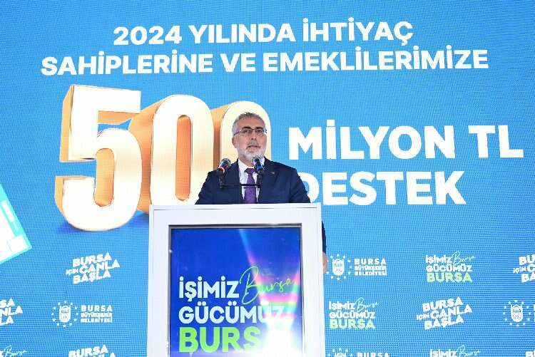 Bursa’daki ihtiyaç sahiplerine umut, esnafa da katkısı olacak ‘Gıda, giyim, kırtasiye sosyal destek çekleri ile ilgili tanıtım toplantısı ve protokol imza töreni', Atatürk Kongre Kültür Merkezi Fuaye Alanı’nda yapıldı. Çalışma ve Sosyal Güvenlik Bakanı Vedat Işıkhan’ın da yer aldığı törene, Bursa Valisi Mahmut Demirtaş, Bursa Büyükşehir Belediye Başkanı Alinur Aktaş, AK Parti İl Başkanı Davut Gürkan, MHP İl Başkanı Muhammet Tekin, Esnaf Kefalet Üst Birlik Başkanı Bahri Şarlı, BESOB Başkanı Fahrettin Bilgit, Osmangazi Belediye Başkanı Mustafa Dündar, esnaf odalarının başkanları, bakkal esnafı, hazır giyimciler, ayakkabıcılar ve kırtasiyeciler de katıldı.