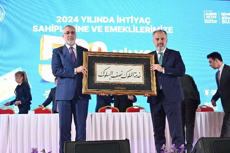 Çalışma ve Sosyal Güvenlik Bakanı Vedat Işıkhan, Bursa Büyükşehir Belediye Başkanı Alinur Aktaş’ın birçok çalışmasına yakından tanıklık etmenin mutluluğunu yaşadığını söyledi. Yapılan protokolün Bursalılara hayırlı uğurlu olmasını dileyen Bakan Işıkhan, kadim devlet geleneğinin temel taşlarından olan sosyal devlet anlayışını hiçbir zaman terk etmediklerini dile getirdi. Bursa’nın Anadolu kültür kodlarının, kadirşinaslığın, hoşgörünün de şehri olduğunu belirten Işıkhan, “Devlet geleneğimizin en ince ayrıntısına kadar yaşatıldığını ve ayakta tutulduğunu Bursa’da gördük. Bizler de insanlarımızın yanında olmaya çalışıyoruz. Bursa Büyükşehir Belediye Başkanı Alinur Aktaş’a bilhassa emekliler açısından yürüttüğü çalışmadan dolayı teşekkür ediyorum. Bizler de kurum olarak emeklilerimiz için çalışmaya ve mücadele etmeye devam ediyoruz. Bir defaya mahsus bütün emeklilerimize 5 bin TL ikramiye ödeneğimizi yaptık. Emekli aylıklarında artış oranını bütün emeklilerimiz için yüzde 49,25 olarak belirledik. 2024 yılını ‘Emekliler Yılı’ olarak ilan ettik. Emeklilerimizin yanında olmayı sürdüreceğiz. Bursa Büyükşehir Belediyesi’nin emeklilerimiz için açıkladığı çalışmanın Bakanlık olarak sonuna kadar yanındayız. Protokolde emeği geçen Başkanımız Alinur Aktaş başta olmak üzere tüm kurumlarını kutluyorum. Hayırlı uğurlu olsun” diye konuştu.