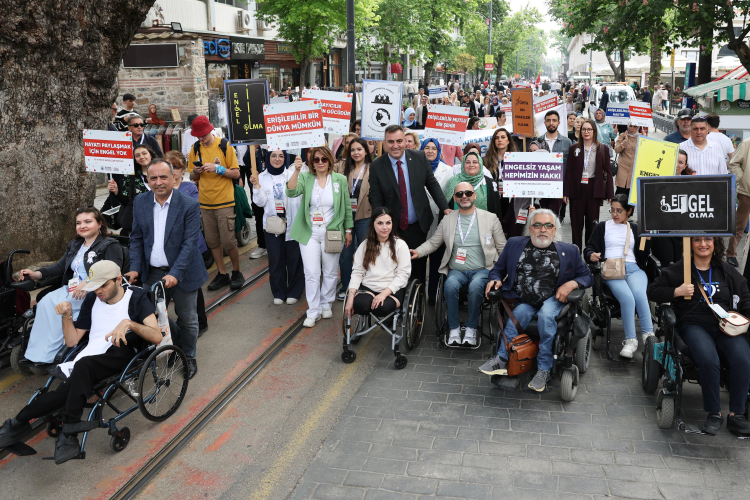 Bursa’nın daha yaşanılabilir ve daha ulaşılabilir hale gelmesi için hayatı kolaylaştırıcı çözümler üreten Büyükşehir Belediyesi, 10-16 Mayıs Engelliler Haftası kapsamında herkesin eşit ve mutlu yaşadığı bir Bursa için ‘Engelsiz Bursa Buluşması’ düzenledi. Sosyal Hizmetler Dairesi Başkanlığı Engelli Hizmetleri Şube Müdürlüğü aracılığıyla, Bursa Kent Konseyi Engelliler Meclisi ve engelli sivil toplum kuruluşlarının katkılarıyla düzenlenen buluşma, Cumhuriyet Caddesi Çancılar girişinden başlayıp Hanlar Bölgesinde son bulan kortej yürüyüşüyle başladı. Yürüyüşe özel gereksinimli bireyler ile birlikte Bursa Büyükşehir Belediyesi Başkanvekili Mehmet Aydın Saldız da katıldı. Büyükşehir Belediyesi Bandosu eşliğinde yapılan yürüyüşte, vatandaşlar ellerinde taşıdıkları dövizlerle engelsiz yaşam haklarına dikkat çekti.