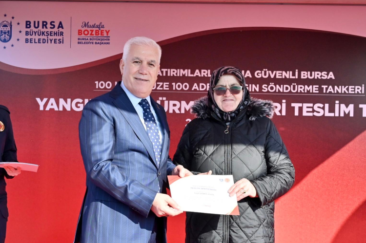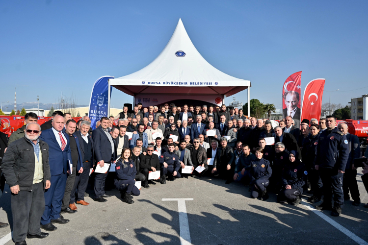 Bursa Büyükşehir Belediyesi, halkın can ve mal güvenliğini artırmak, doğal afetlere karşı daha hazırlıklı olmalarını sağlamak amacıyla ‘Gönüllü İtfaiyecilik’ kapsamında kırsal mahallelere 100 adet traktör arkası yangın tankeri dağıttı. Başkan Mustafa Bozbey, “Bizim yönetim anlayışımızda hiçbir mahallemiz yalnız değildir” dedi.