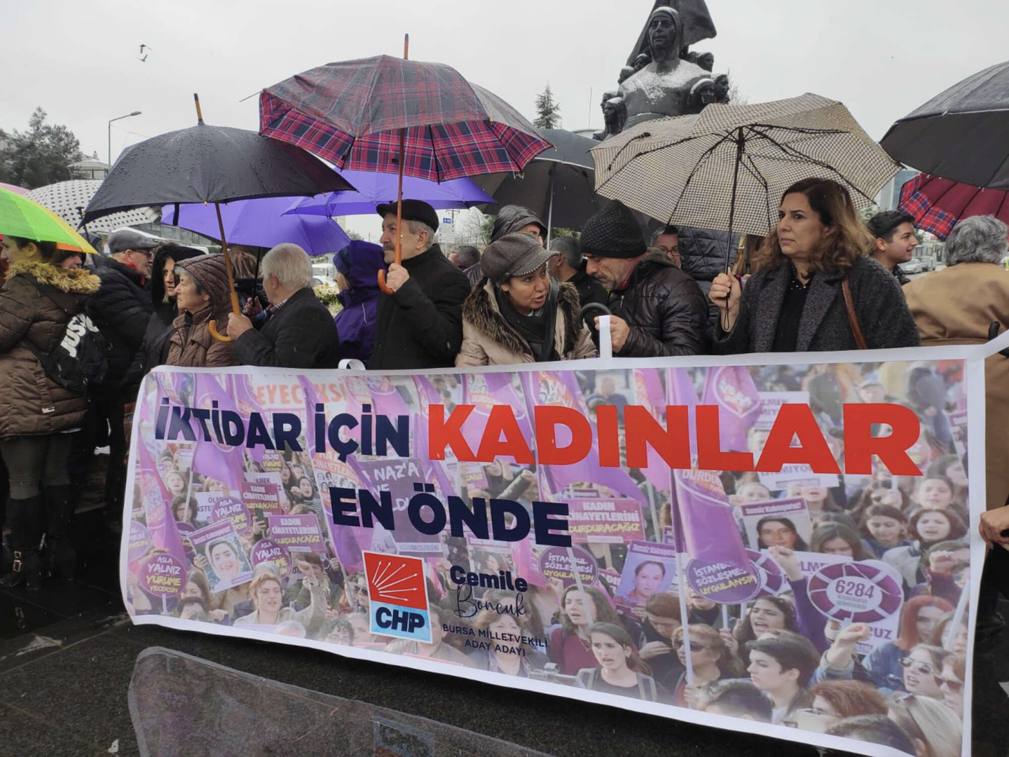 Yıllarca Cumhuriyet Halk Partisi’nin birçok kademesinde aktif sorumluluk alan ve kadın hakları mücadelesinde hep ön saflarda bulunan Cemile Boncuk, Bursa’nın Yunan işgalinden kurtuluşunda aktif rol oynayan Üsteğmen Kara Fatma’nın Beşevler’deki heykelinin önünde aday adaylığı açıklamasını yaptı. Boncuk açıklamasında; “Kurtuluş yok tek başına, ya hep beraber ya hiçbirimiz” diyerek dayanışmayı yüceltti.