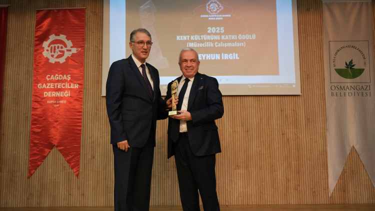 Özellikle müzecilik konusundaki çalışmalarıyla Kent Kültürüne Katkı Ödülü verilen Dr. Ceyhun İrgil ise ödülünü Nilüfer Belediye Başkanı Şadi Özdemir takdim etti.