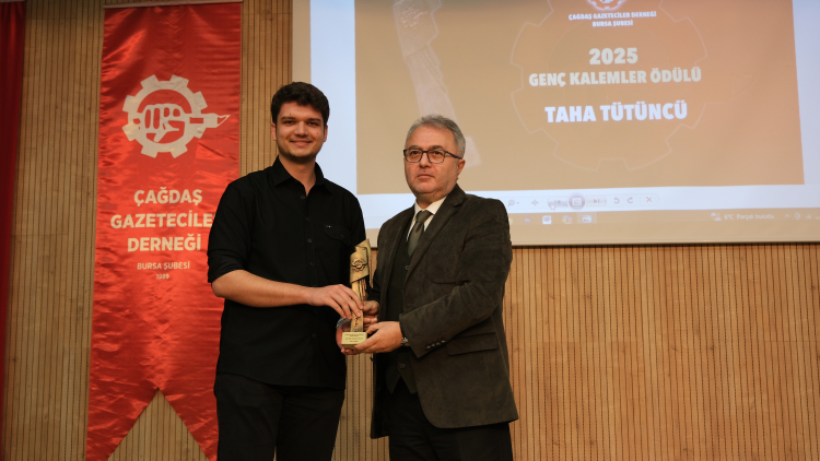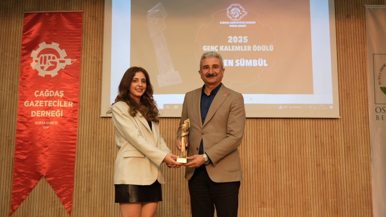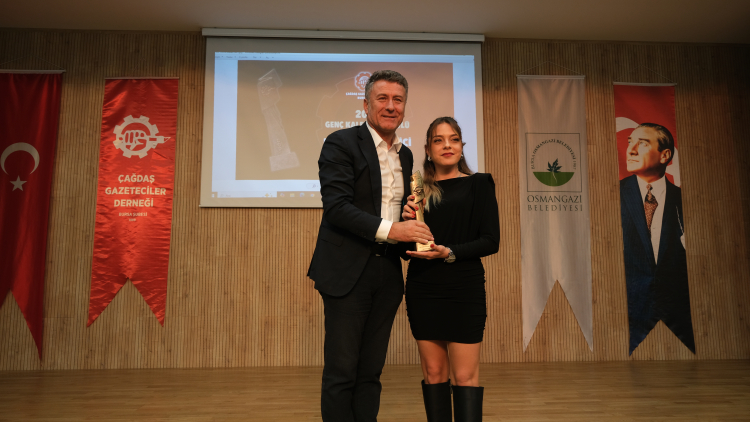 Bursa’nın yetiştirdiği ve gelecek vaat eden genç gazeteciler ise “Genç Kalemler Ödülü’ne layık görüldü. Ceren Sümbül’e ödülünü CHP Bursa İl Başkanı Nihat Yeşiltaş verirken,