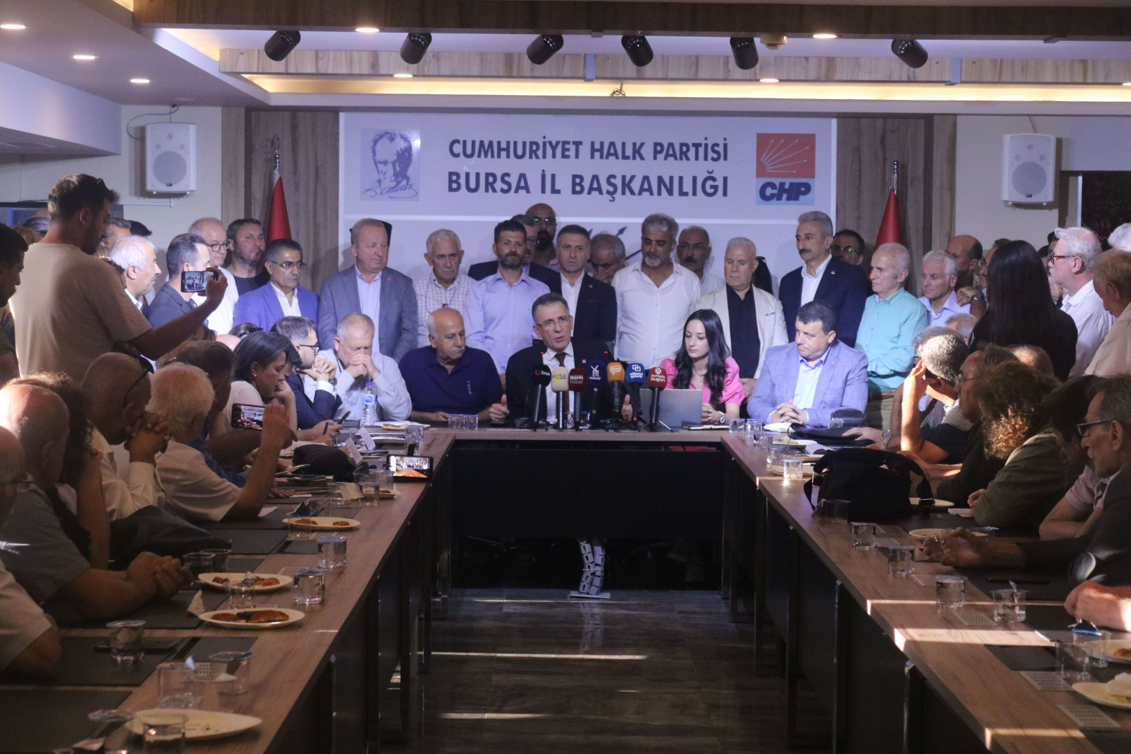 CHP Bursa İl Başkanı Adayı Gürhan Akdoğan CHP Bursa İl Başkanlığı’nda basın açıklaması yaptı. Parti üyelerinin katılım gösterdiği toplantıda eski Nilüfer Belediye Başkanı Mustafa Bozbey, CHP Bursa Milletvekili Hasan Öztürk, CHP Bursa İl Başkan Adayı Nihat Yeşiltaş, CHP Bursa Nilufer İlçe Başkanı Özgür Şahin, CHP Osmangazi İlçe Başkan Cengiz Çelikten, CHP Yıldırım İlçe Başkanı İlhami Gün’de yer aldı.
