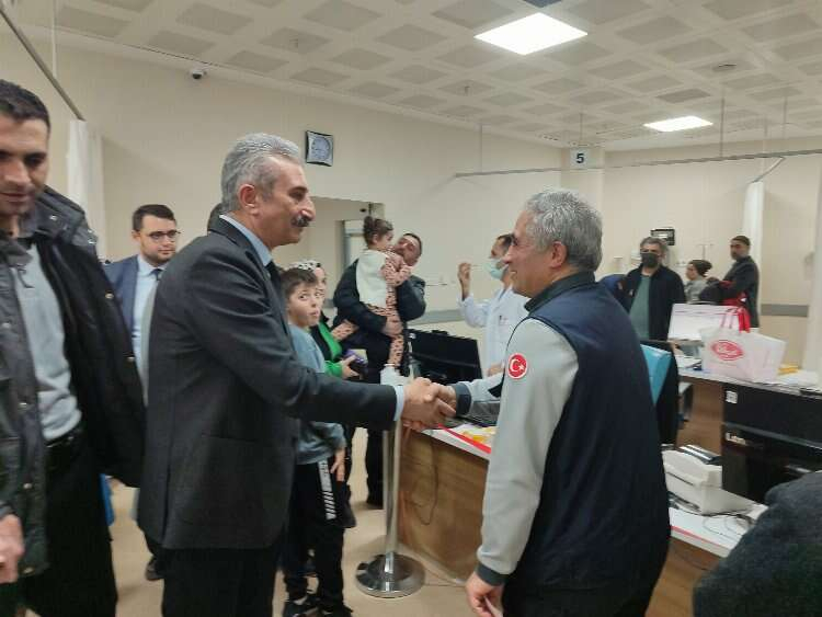 İl Sekreteri Oktay Kartalkaya, Gürsu İlçe Başkanvekili Muhammet Aydın, İlçe Yönetim Kurulu Üyeleri ve Gürsu Belediye Başkan Aday Adayımız Haşim Öztürk ile birlikte Gürsu Devlet Hastanesi’ni de ziyaret eden İl Başkanı Yeşiltaş zorlu koşullarda üstün gayretle görev yapan sağlık emekçilerimiz ile tedavi olan hastalarımızın yeni yıllarını kutladı.