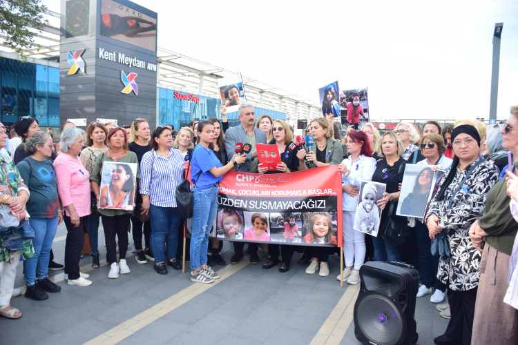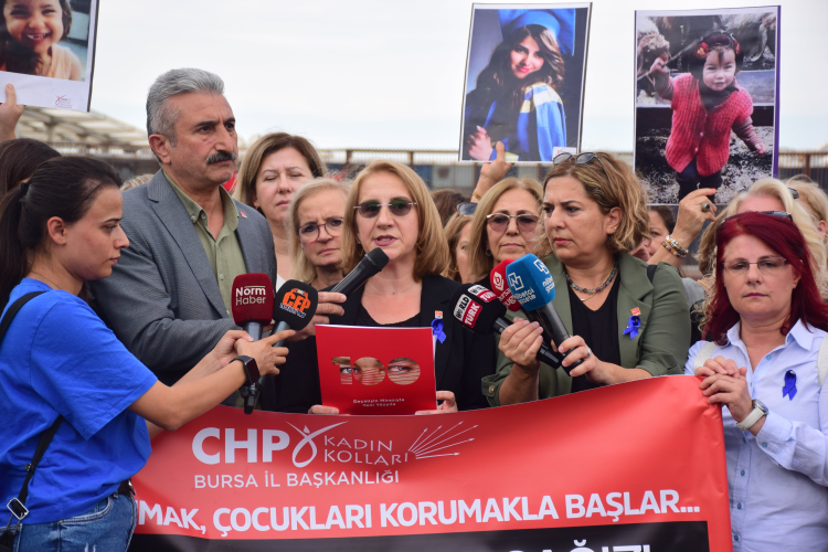 Cumhuriyet Halk Partisi Bursa İl Kadın Kolları Başkanlığı Narin Güran, istismara uğrayarak hayat mücadelesi veren Sıla Bebek, katledilen kadınlar ve çocuklar için Kent Meydanı’nda basın açıklaması düzenledi.