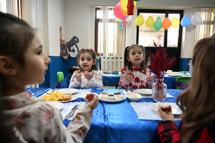 Oruç tutmanın mutluluğunu yaşayan minikler, arkadaşlarıyla birlikte iftar yaptı.