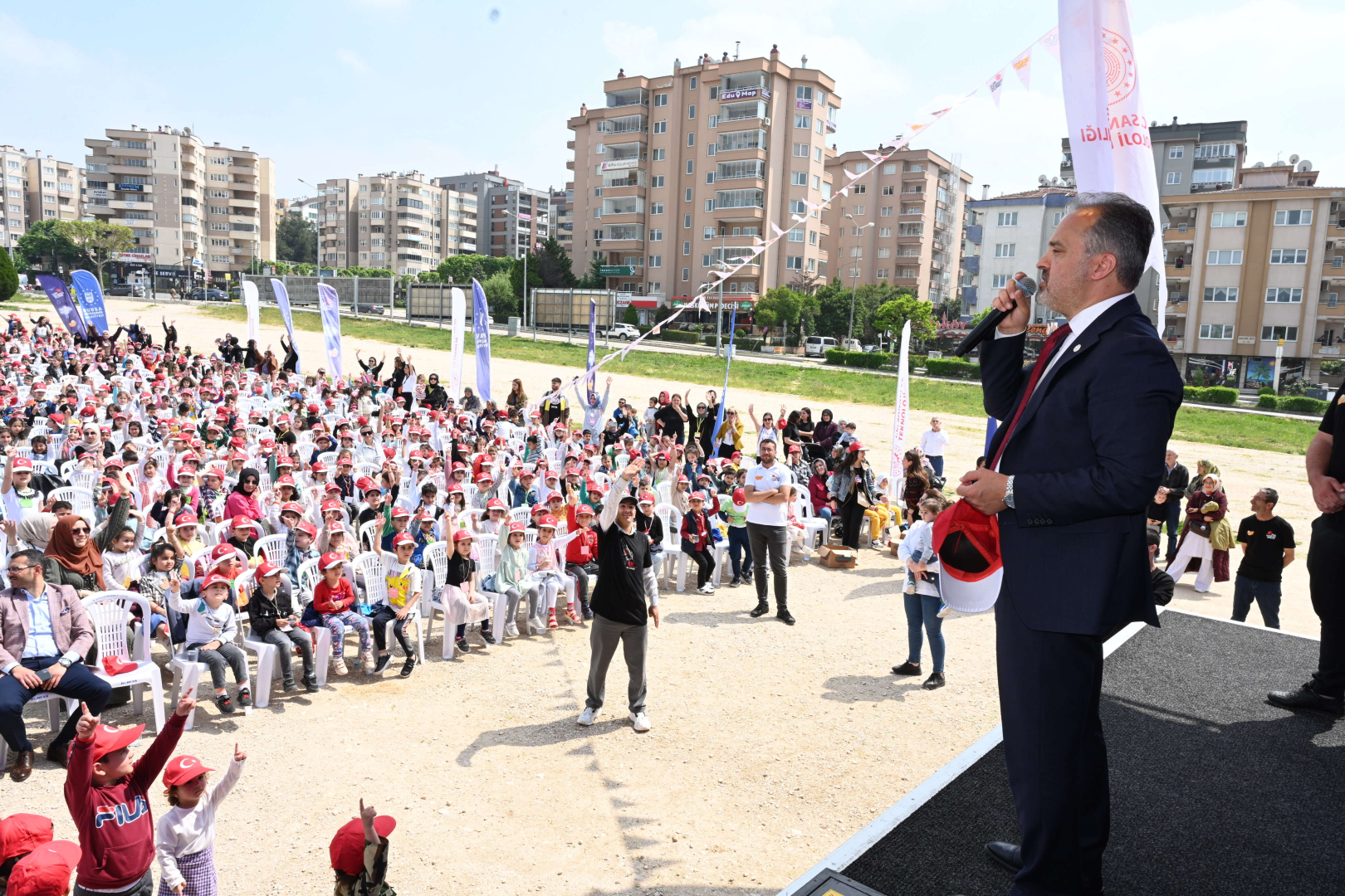 Çocukların heyecanına ortak olan Bursa Büyükşehir Belediye Başkanı Alinur Aktaş, 13 Mayıs’a kadar 17 ilçede toplam 36 ayrı gösteri yapılacağını hatırlattı. Alanı dolduran çocuklara seslenen Başkan Aktaş, “Geleceğin mühendisleri, mimarları, bilim insanları sizlersiniz. Yüksek teknoloji sizinle gelecek. Teknolojik Tayfa’yı sizlerle buluşturan Sanayi ve Teknoloji Bakanımız Mustafa Varank’a teşekkür ediyorum” dedi.