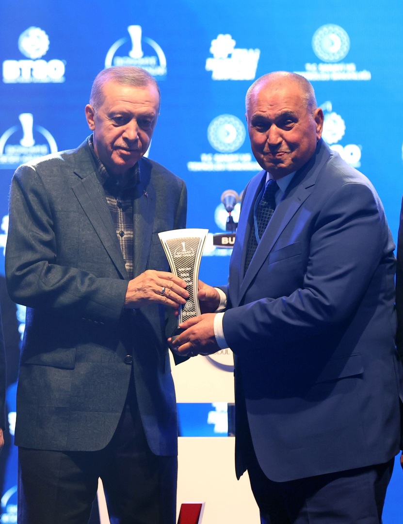 Bakanlar ve Cumhurbaşkanı Recep Tayyip Erdoğan Bursa Ticaret Sanayi Odası Başkanı İbrahim Burkay ile birlikte 4 kategoride işadamlarına ödüllerini takdim etti.