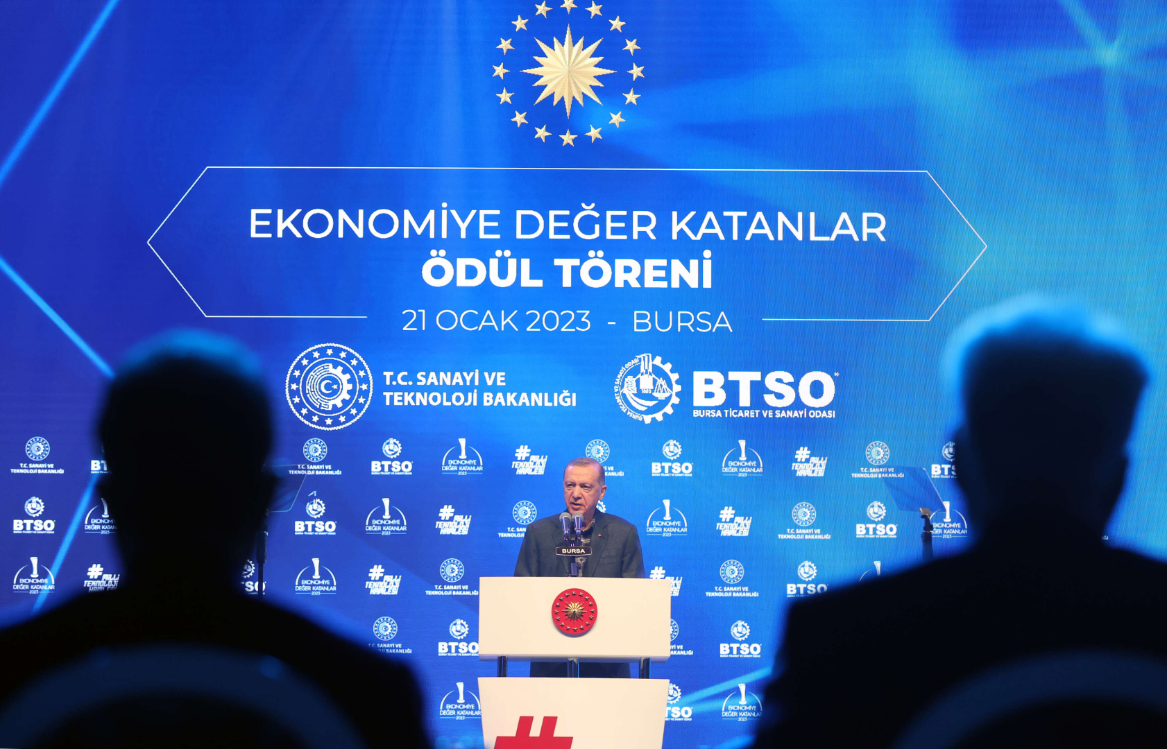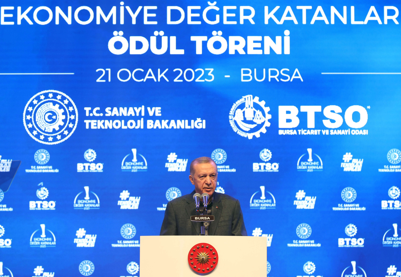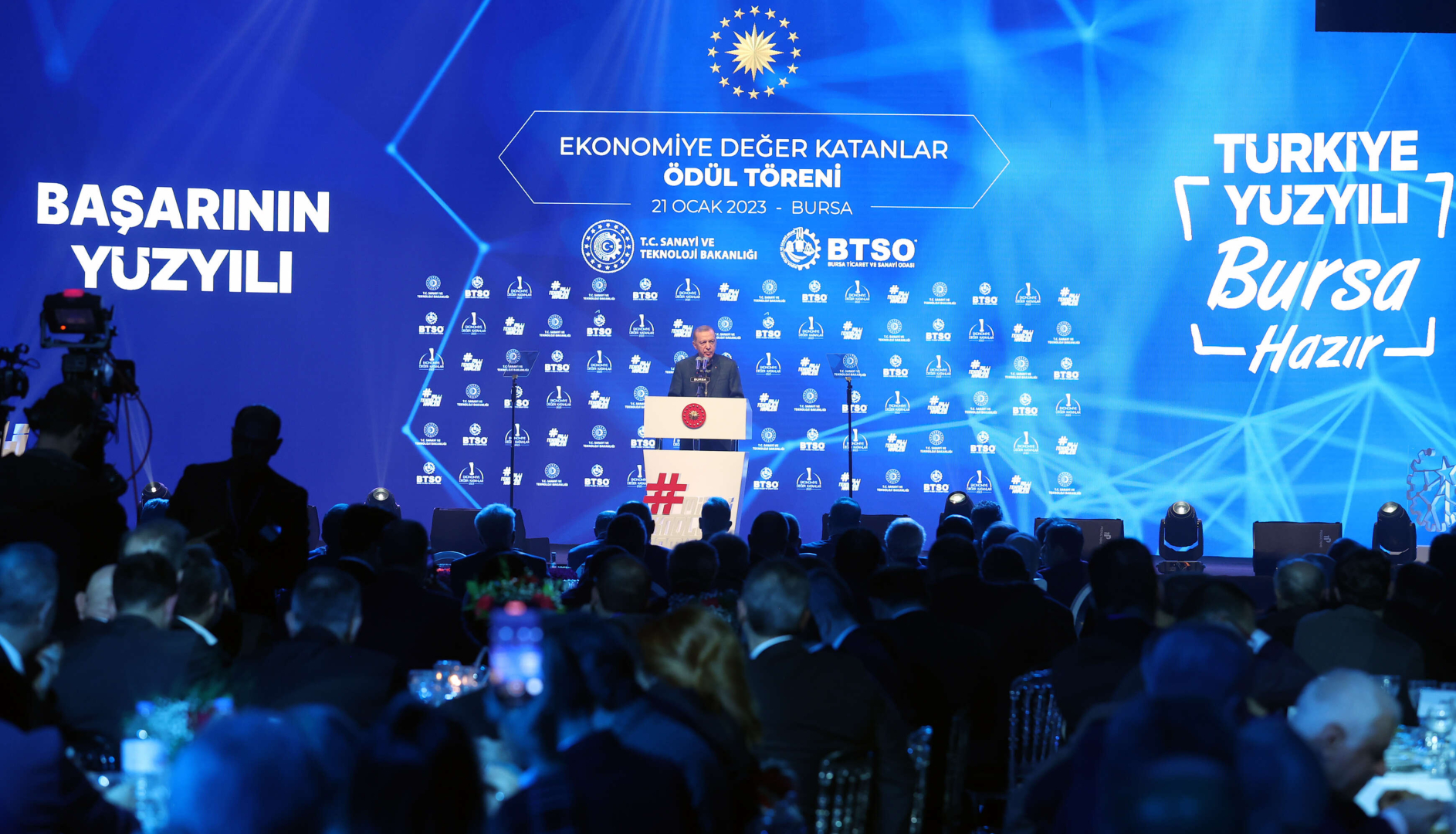 Erdoğan, Bursa Ticaret Sanayi Odası tarafından 48.kez düzenlenen 2022 Ekonomiye Değer Katanlar Ödül törenine katıldı.
