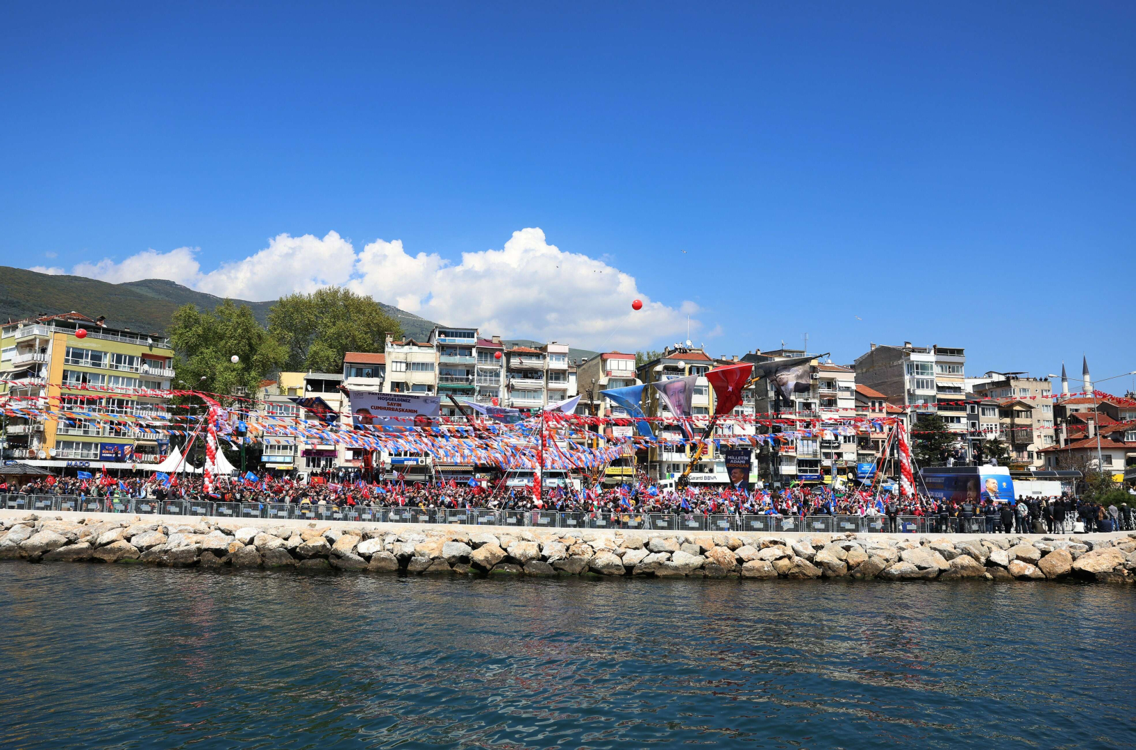 Erdoğan, "14 Mayıs'ta sandıklara gitmeye hazır mıyız? Ben size inanıyorum. Sandıkları patlatmaya var mıyız? 7'li koalisyon tüm kazanımlarımızı yok etmek için gün sayıyor. Onlarla beraber gün sayan başkaları da var. Bay bay Kemal 'cezaevlerini boşaltacağız' diyor. Bu ülke hukuk devleti neyi boşaltıyorsun. Diyarbakır'da 51 Kürt kardeşimizin terörist Selo'yu bile çıkaracağım diyor. Bunun yanında Apo'yu da çıkaracağım diyor. Bunu diyen kim? Bunun yanında Meral hanım, o da söylüyor. HDP zaten söylüyor. Bunlar şehitlerimizin kanını yerde bırakmaya var. Biz şehitlerimizin kanını yerde bırakmadık, bundan sonra da bırakmayacağız. Terör örgütünün parlamentodaki temsilcileriyle bay bay Kemal görüşmesini yaptı. PKK ve FETÖ terör örgütlerinin mensupları şimdi gün sayıyormuş. 14 Mayıs'ta bütün heveslerini kursaklarında bırakacaksınız. Askeri faaliyetlerimizden rahatsız olanlar da gün sayıyor. Aralarındaki kavga, dövüş şantaj oyunları ayyuka çıkanların ülkeye bir taahhüdünü duydunuz mu, eğitimde, sağlıkta güvenlikte, ulaşımda, tarımda herhangi bir proje vadettiklerini duydunuz mu, evlatlarımızın geleceğine dair herhangi bir şeylerini duydunuz mu duyamazsınız. Bunların böyle bir derdi yok. Güvenliğimizi terör örgütlerine, ekonomimizi tefecilere teslim ederek Türkiye'yi yarım asır geriye götürmektir. Ülkemizi bu yıkım ekibinin insafına terketmeyeceğiz. Burası Bursa'nın en önemli ilçesi Gemlik. Eskiden İstanbul- İzmir arası ne kadardı. 7.5 saat. Şimdi 3 saat 15 dakika. İndirdik mi. Sen İzmir milletvekilisin. Bir çok belediye size ait ne yaptın İzmir'e. İstanbul -İzmir arasını 3.5 saate indiren Ak Parti'dir. Biz yaparız siz yıkarsınız. Osmangazi köprüsünü yaptık mı, kullanıyor musunuz. Marmara'yı yaptık, kullanıyor musunuz, Avrasya'yı yaptık, kullanıyor musunuz. Biz size aşığız aşık. Bundan sonra da yapmaya devam edeceğiz. Gemlik'ten öyle bir ses verin ki Marmara'nın dört bir yanından duyulsun" dedi.