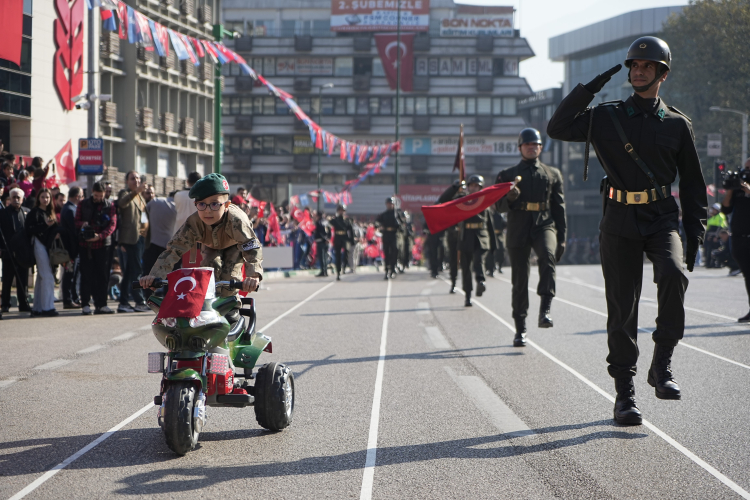 29 Ekim Cumhuriyet Bayramı'nın 101'inci yılı, Bursa Valiliği tarafından düzenlenen programla kutlandı. Atatürk Caddesi'ndeki törene büyük ilgi gösteren vatandaşlar, ellerindeki Türk bayraklarıyla kutlamaları izledi. Törenler, Vali Erol Ayyıldız Tarihi Valilik Binası'nda protokol üyeleriyle birlikte tebrikleri kabul etmesiyle başladı.