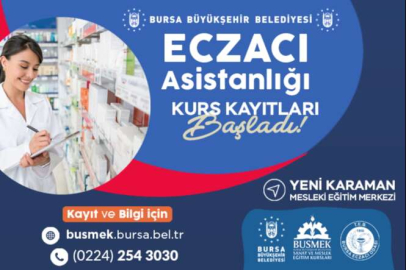 “Eczacı Asistanlığı” kursu, Yeni Karaman Mesleki Eğitim Merkezinde 3 Nisan 2023 tarihinde başlayacak. Kursa katılmak isteyenler, busmek.bursa.bel.tr internet adresi veya 254 3030 numaralı telefondan kayıt yaptırıp, bilgi alabilecek.