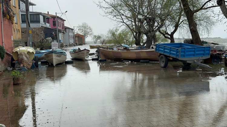 Yağışların etkisiyle su seviyesini yükselen Uluabat Gölü'nde, en derin yeri 10 metreyi geçerken, 15 yıldır görülmeyen oldu ve Gölyazı Mahallesi'nin çevresindeki yollar göl sularıyla