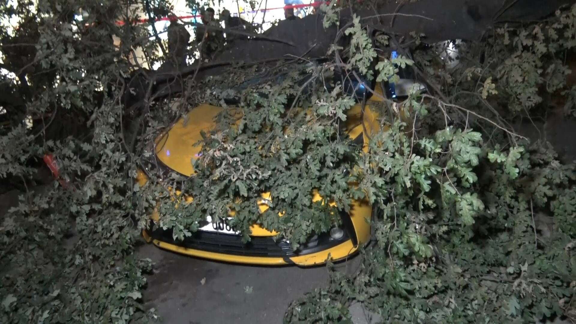 Bursa’da bir taksi durağının yanında bulunan 193 yaşındaki anıt ağaç, iki ticari taksinin üzerine devrildi. Devrilen ağaç yanındaki elektrik tellerine dolanırken şans eseri çevrede kimsenin olmamasıyla faciadan dönüldü.