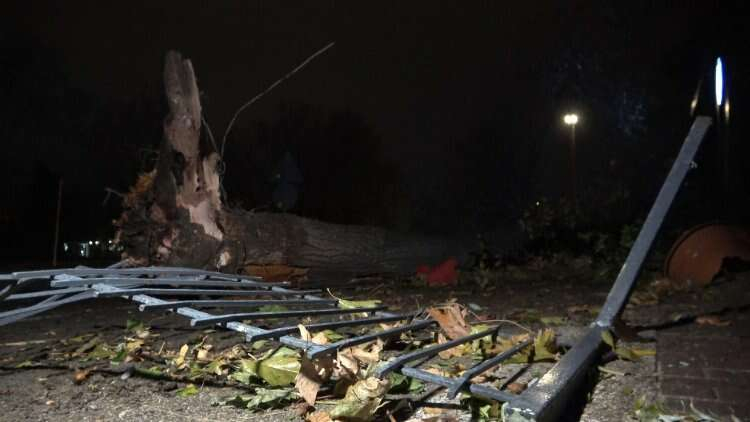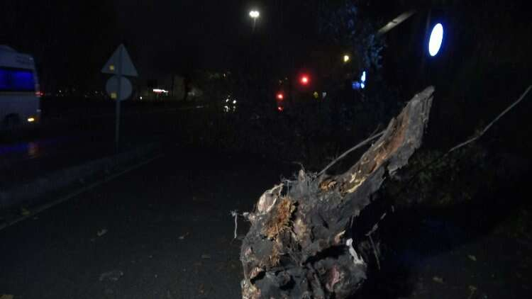 bir çok noktada fırtına sebebiyle ağaçlar köklerinden söküldü.