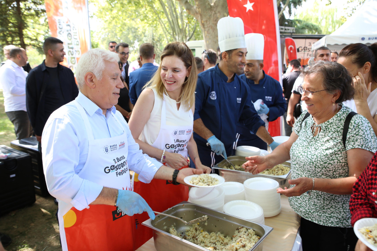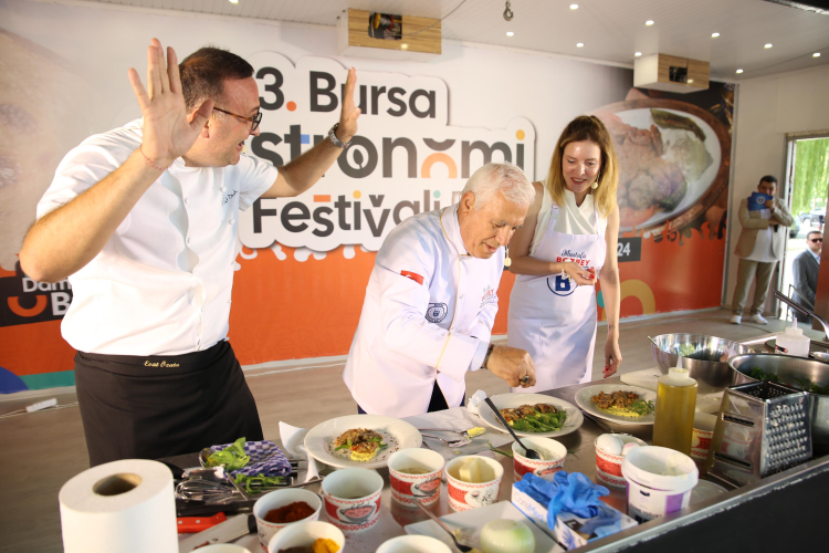 Bursa Büyükşehir Belediye Başkanı Mustafa Bozbey, eşi Seden Bozbey ile birlikte 3. Gastronomi Festivali öncesinde ilçe ilçe gezerek kentin eşsiz lezzetlerini tanıtan ‘Gastronomi Tırı’na konuk oldu. Şef Dr. Esat Özata ile birlikte kestaneli mücver yapan Başkan Bozbey, “Bursa’nın merkezinde farklı tatlar, ilçelerinde farklı tatlar var. Bu değerleri tanıtarak turizme kazandırmak istiyoruz” dedi.