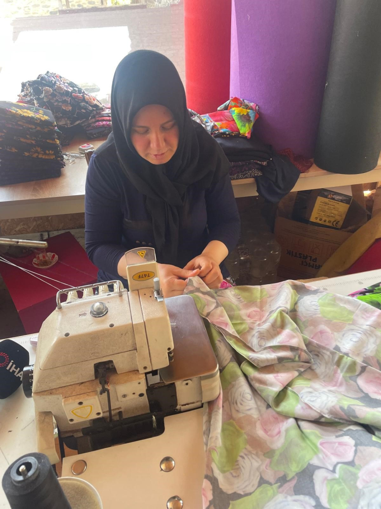 Vakit buldukça şalvar diktiğini ve farklı renklerde yüzlerce satışa hazır ürününün bulunduğunu aktaran Sezer, "Bir şalvarı dikmem 10-15 dakikamı alıyor ama yine de kolay değil. Kesimi dikimi derken parmakların su topluyor ellerimde yaralar oluşuyor. Tülbentleri de 200 liradan satıyorum. Tülbentleri de kendim yapıyorum" dedi.