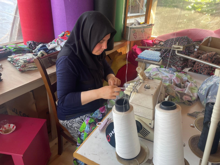 "Biz de eşimle şalvar ve tülbentleri hazır alıp satıyorduk. Ancak satın alınanların 10-20 santimetre kısa olunca tüketicilerden olumsuz geri dönüşler aldık. Ben de 5-6 yıl önce kendim dikmeye karar verdim. Hazırlara göre biraz daha uzun yapıyorum çünkü bu kumaşlar biraz da çekme yapabliyor. Bu köyde kendi diktiğimi satyorum. Benim gibi kendi dikip satan sanırım yok. Kendim seçiyorum, kesiyorum, dikiyorum ve satıyorum. 250 lira bir şalvar. Çarşı gibi çok değil satışlar günden güne değişiyor."