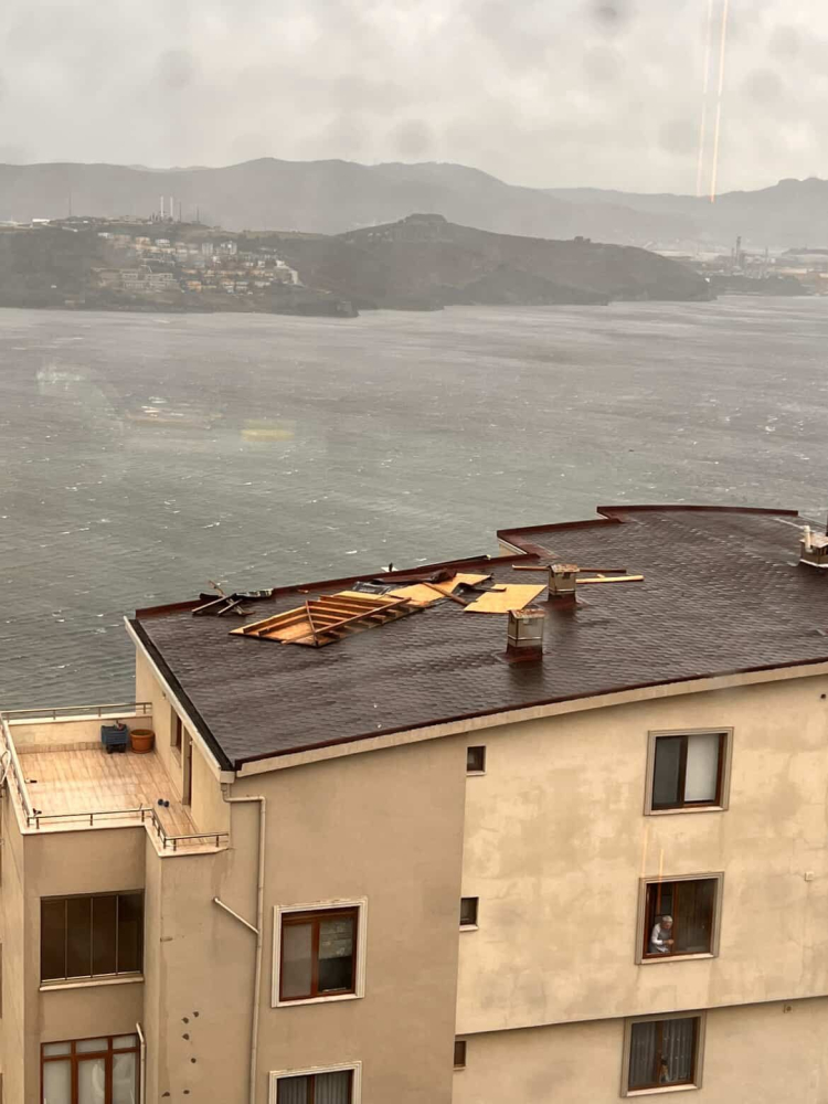 Gemlik'te şiddetli lodos sebebiyle çatılar bir bir uçtu