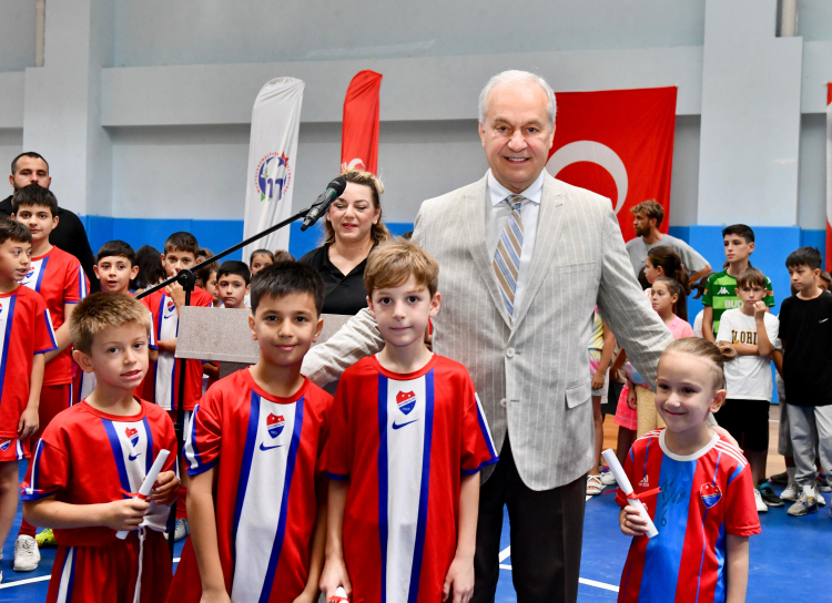 Yaz spor okulları töreninde konuşma yapan Belediye Başkanı Şükrü Erdem’’ Sporun birleştirici gücünü bir kez daha yürekten hissettiğimiz bu anlamlı törende, sizlerle birlikte olmaktan büyük bir mutluluk duyuyorum. Mustafakemalpaşa Belediyesi olarak, gençlerimize spor yapma imkânları sunarak, onların fiziksel ve ruhsal gelişimlerine katkı sağlamak, en büyük önceliklerimizden biri. Yaz ayı boyunca 9 ayrı branşta öğrencilerimize verimli bir yaz tatili geçirme imkanı sağladık. Spor, sadece beden sağlığını korumakla kalmaz, aynı zamanda disiplin, takım ruhu ve azim gibi hayatın her alanında ihtiyaç duyacağımız değerleri de kazandırır. Değerli gençler, sizleri spor okullarımızda gösterdiğiniz başarıdan ötürü kutluyorum. Spor, bir yaşam biçimidir ve umuyorum ki burada kazandığınız alışkanlıklar, yaşam boyu sizinle kalacak. Unutmayın, başarı sadece madalyalarla ölçülmez; en büyük başarı, kendinizi sürekli geliştirmek ve her gün bir adım daha ileriye gitmektir. Hepinize spor hayatlarınızda başarılar diliyorum.’’ İfadelerini kullandı.