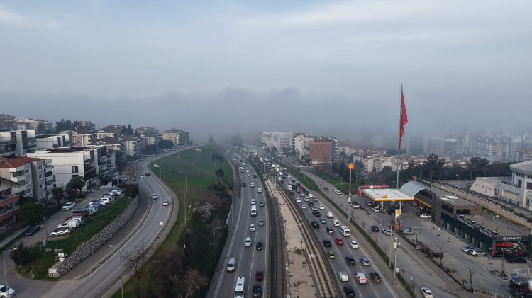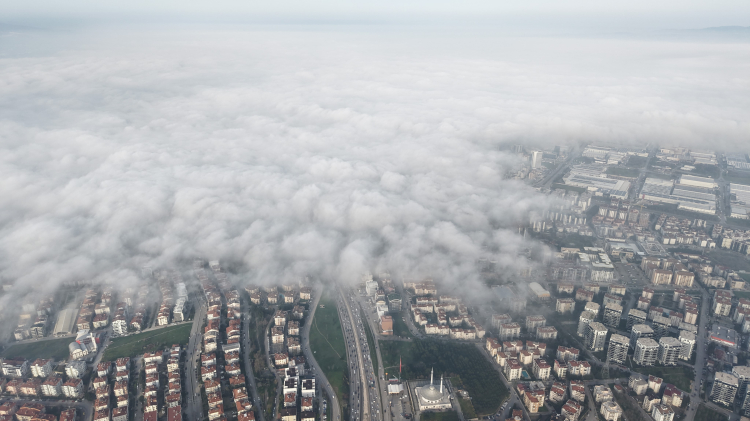 Bursa'nın Nilüfer ilçesinden itibaren batı tarafına doğru etkili olan sis, film sahneleri gibi görüntüler ortaya koydu.