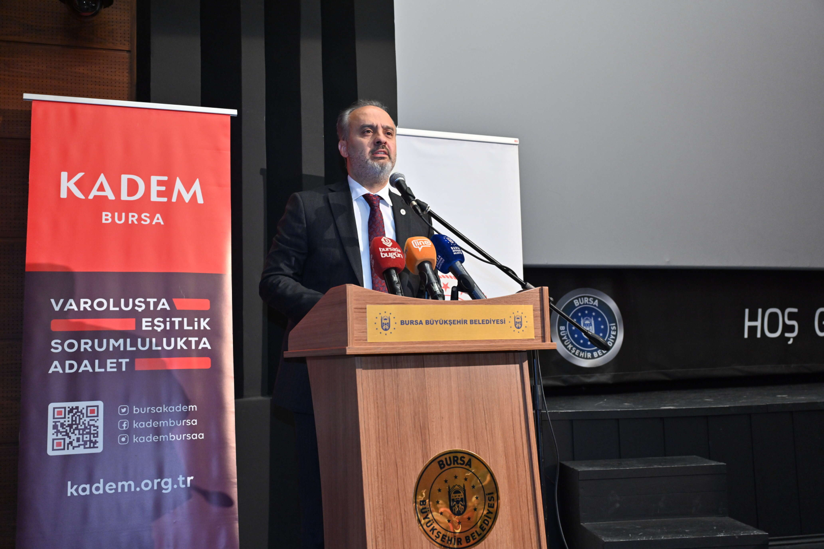 Panelin açılış töreninde konuşan Bursa Büyükşehir Belediye Başkanı Alinur Aktaş, Türk inanç ve kültüründe kadının toplumun olmazsa olmazı ve çok önemli bir parçası olduğunu söyledi. Toplumsal olarak, her başarılı erkeğin, her muvaffak olmuş, iyi yerlere gelmiş erkeğin arkasında bir kadının olduğu bir anlayışa sahip olduklarını dile getiren Başkan Aktaş, “Son yıllarda aile kavramının ciddi zarar görmesi, bu manada ciddi etkilenmesi ve beraberinde de aile ilişkilerinin bozulmasına ve şiddetin de ortaya çıkmasına vesile oldu. Bunların hiçbirini tasvip etmek, tabii ki mümkün değil. Daha sağlam bir aile yapısı, daha sağlam bir toplum için bilinçlenmemiz ve böyle organizasyonlar da güçlenmemiz gerekiyor. Bu mana Büyükşehir Belediyesi olarak, kadınlarımızın daha da güçlenmesi için elimizden geleni yapıyoruz. 2017 Kasım’da göreve geldiğimizde 5-6 tane kadın kooperatifimiz varken bu 30 küsurlu sayılara çıktı. Hepsine dokunuyoruz, destek veriyoruz. Farklı buluşmalarla da onlara güç katmaya çalışıyoruz. Kadın her aşamada çalışabilir, üretebilir, bir şeyler yapabilir, faydalı olabilir. İllaki çalışma hayatın içerisinde olması gerekmez ama güçlendirmek lazım. Bu toplumu ancak birlik ve beraberlikle yükseltebiliriz. Bu manada şiddete maruz kalan kadınlarımız varsa da bunun bir an evvel bertaraf olmasını diliyorum” dedi.