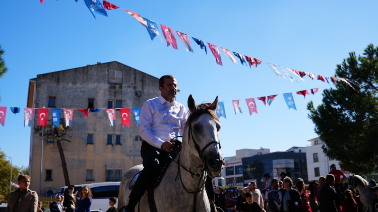 Atlı kortejdeki geçidin ardından meydanda oluşturulan alanda Başkan Işık, at bindi. Vatandaşların yoğun ilgi gösterdiği Cumhuriyet Bayramı kutlamaları sosyal medyada büyük ilgi çekti.