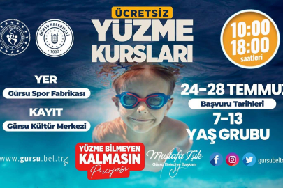 Gürsu Belediyesi, Yüzme Bilmeyen Projesi kapsamında ilçedeki çocukları yüzme sporu ile buluşturuyor. Ücretsiz yüzme kursları başvuruları için duyuruya çıkan Gürsu Belediyesi ,Gençlik ve Spor Bakanlığı’nın destekleri ilçedeki 7-13 yaş grubu arasındaki çocuklara ücretsiz kurs verecek.