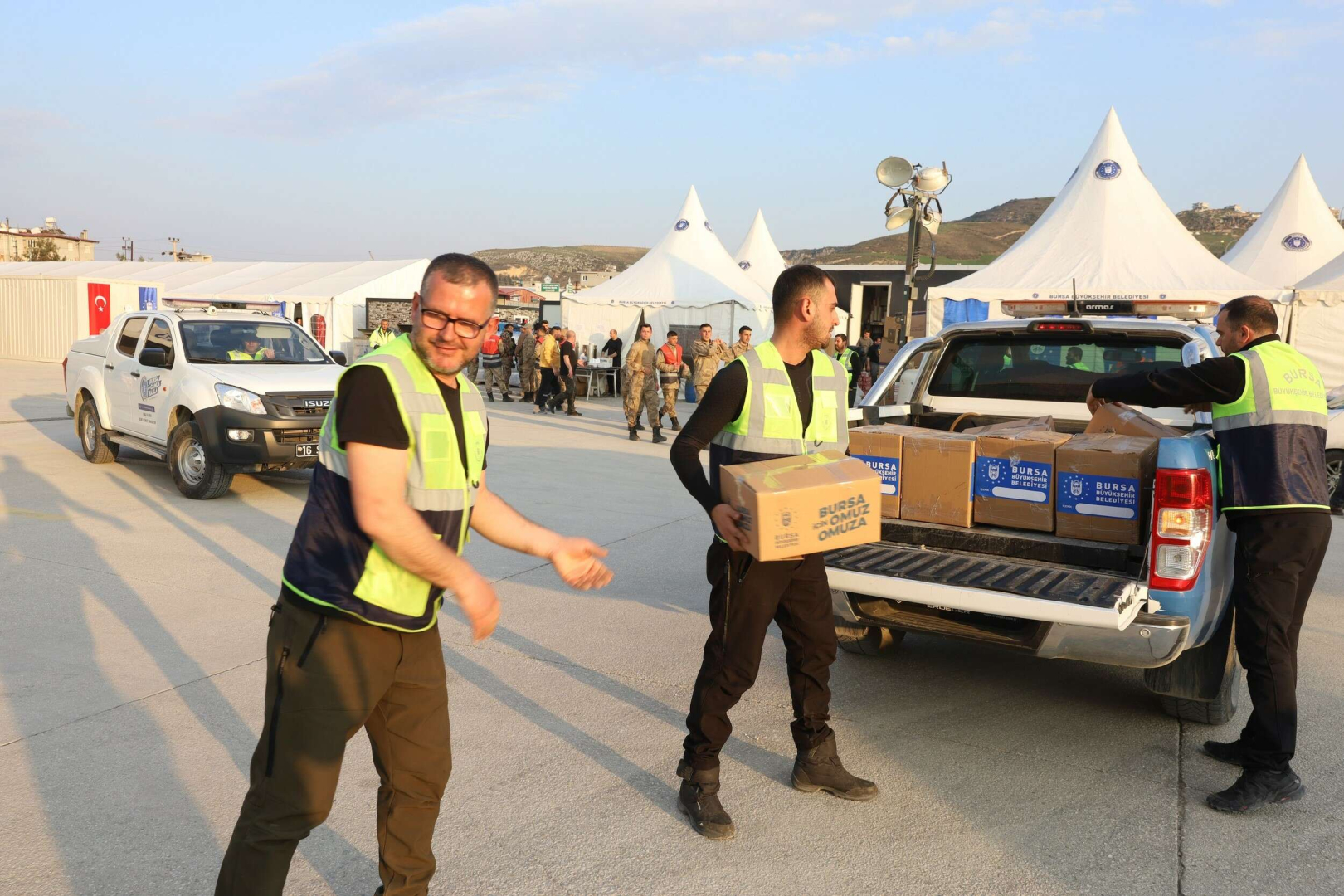 Asrın felaketi olarak nitelendirilen depremin hemen ardından bölgeye ulaşan Bursa Büyükşehir Belediyesi, Gaziantep’in ardından Hatay’da yardımların dağıtımı, seyyar tuvaletler kurulum ve temizliği ile geçici barınma alanlarının kurulumu ile görevlerini ilk günden itibaren aralıksız sürdürüyor.