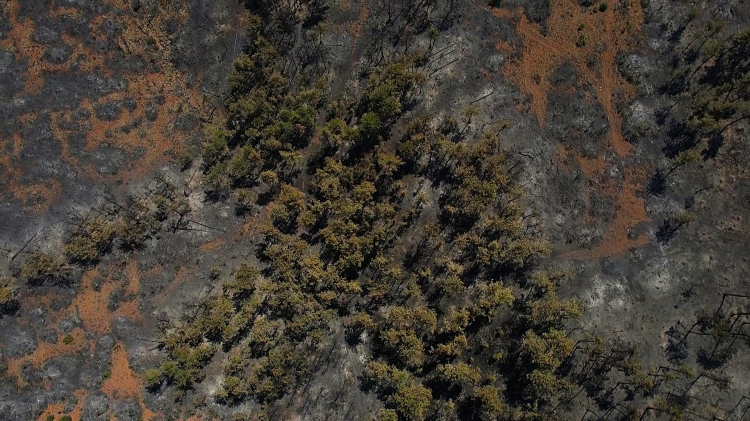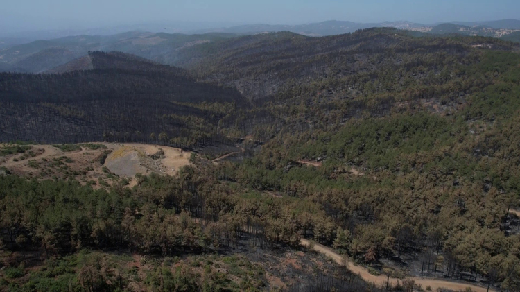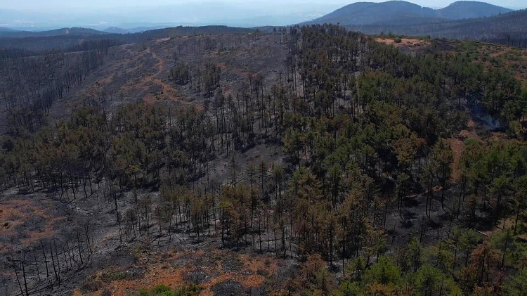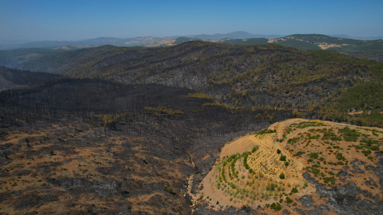Yangınla birlikte ormanlık alanlar önemli ölçüde zarar gördü. Yangın bölgeleri dron ile havadan görüntülenerek acı tabloyu gözler önüne serdi.