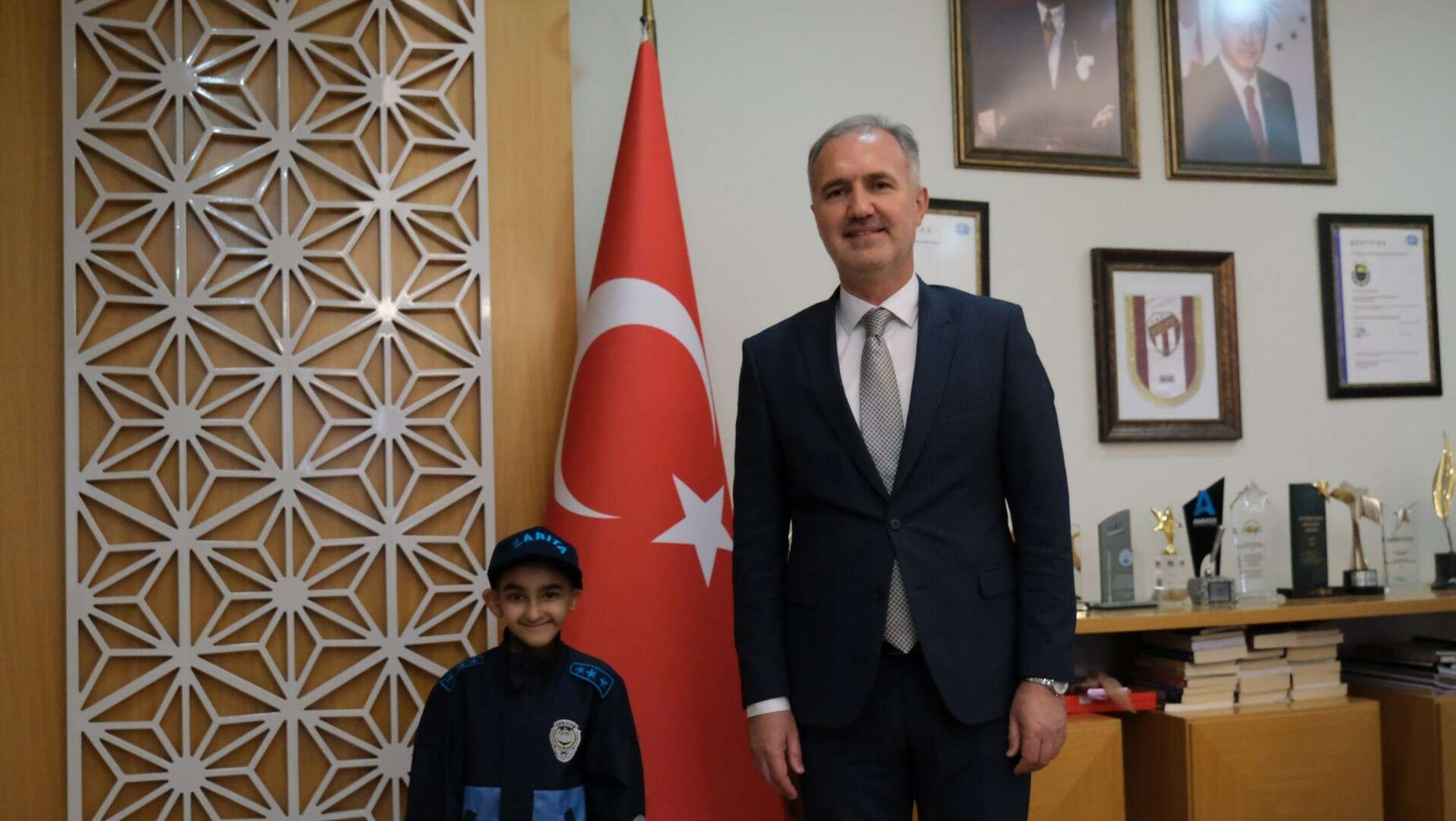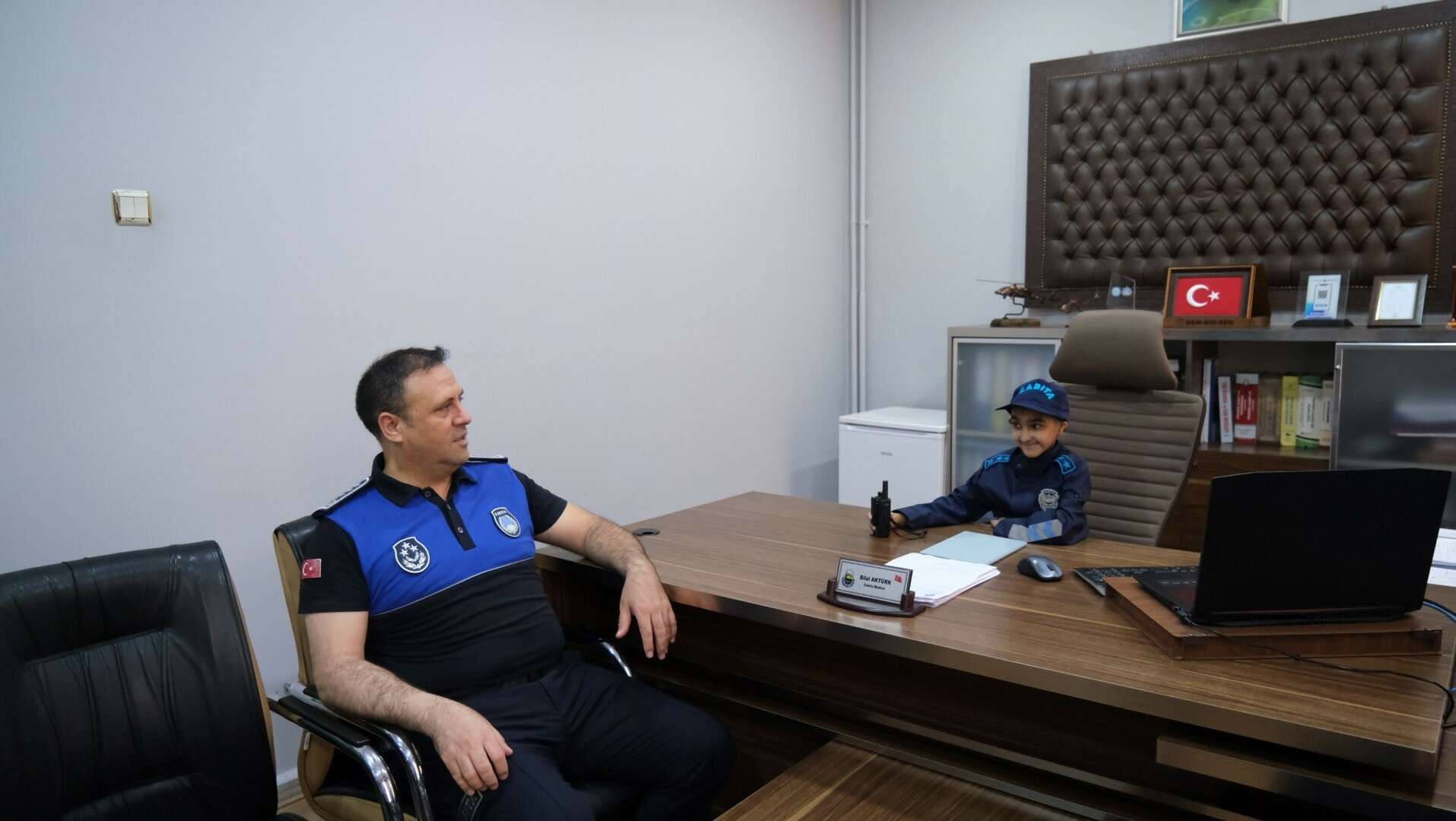 Küçük zabıta Mehmet Kaan Yanık da “Ben zabıta olmak istiyordum. Bugün bana sürpriz yapıldı. Çok mutlu oldum. Zabıta kıyafetiyle ruhsatlara baktık, denetim yaptık. Buradan yerlere çöp atanları da uyarmak, yasak olduğunu hatırlatmak istiyorum. Lütfen çevreyi kirletmeyelim. Çöpleri çöpe atalım” ifadelerinde bulundu.